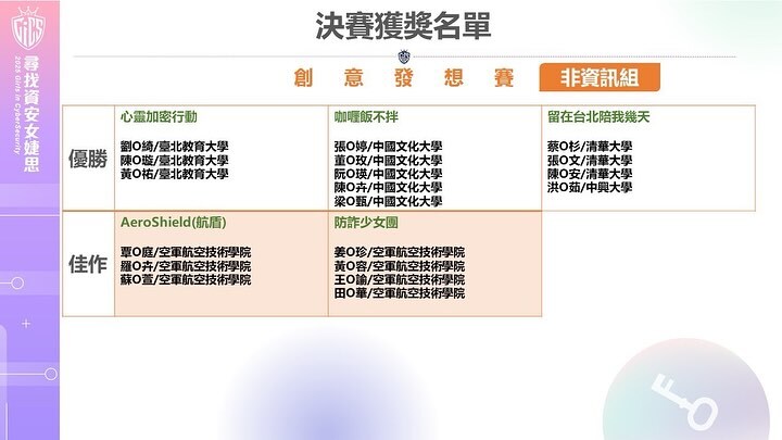 在財金系陳曦老師的指導下,榮獲 國科會第5屆「尋找資安女婕思」創意發想賽中,於非資訊組榮獲「優勝」佳績🏆,展現出財金背景學生在資安創意發想上的跨域潛力與傑出表現!✨