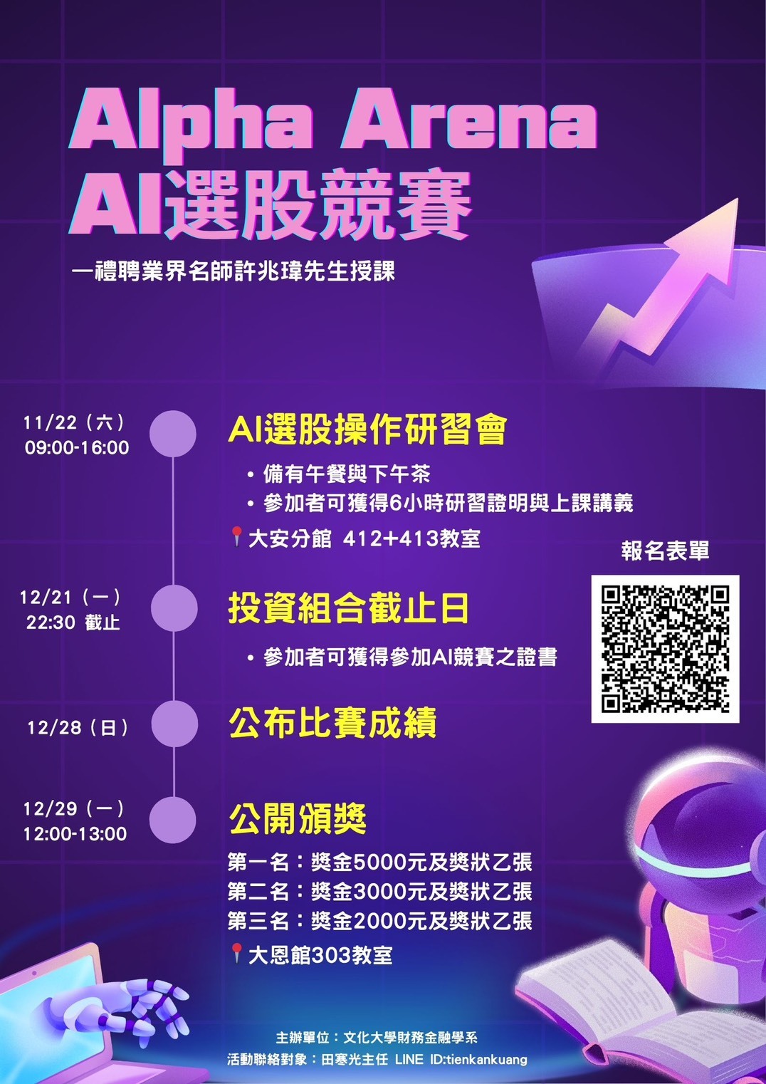 想把「AI」用在投資實戰?來 Alpha Arena,一天學會、兩週實作、公開比成績、現場領獎金!