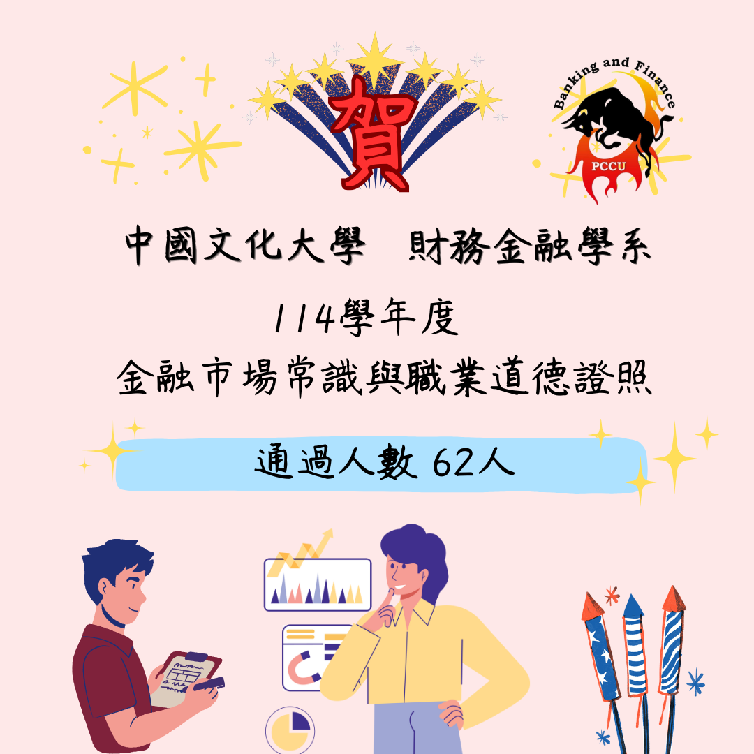 #文化大學財金系 的學生在114-1通過數達64人,雖然只是一小步,但同樣也是邁向成功的開始,希望大家能夠繼續努力!加油!![]()